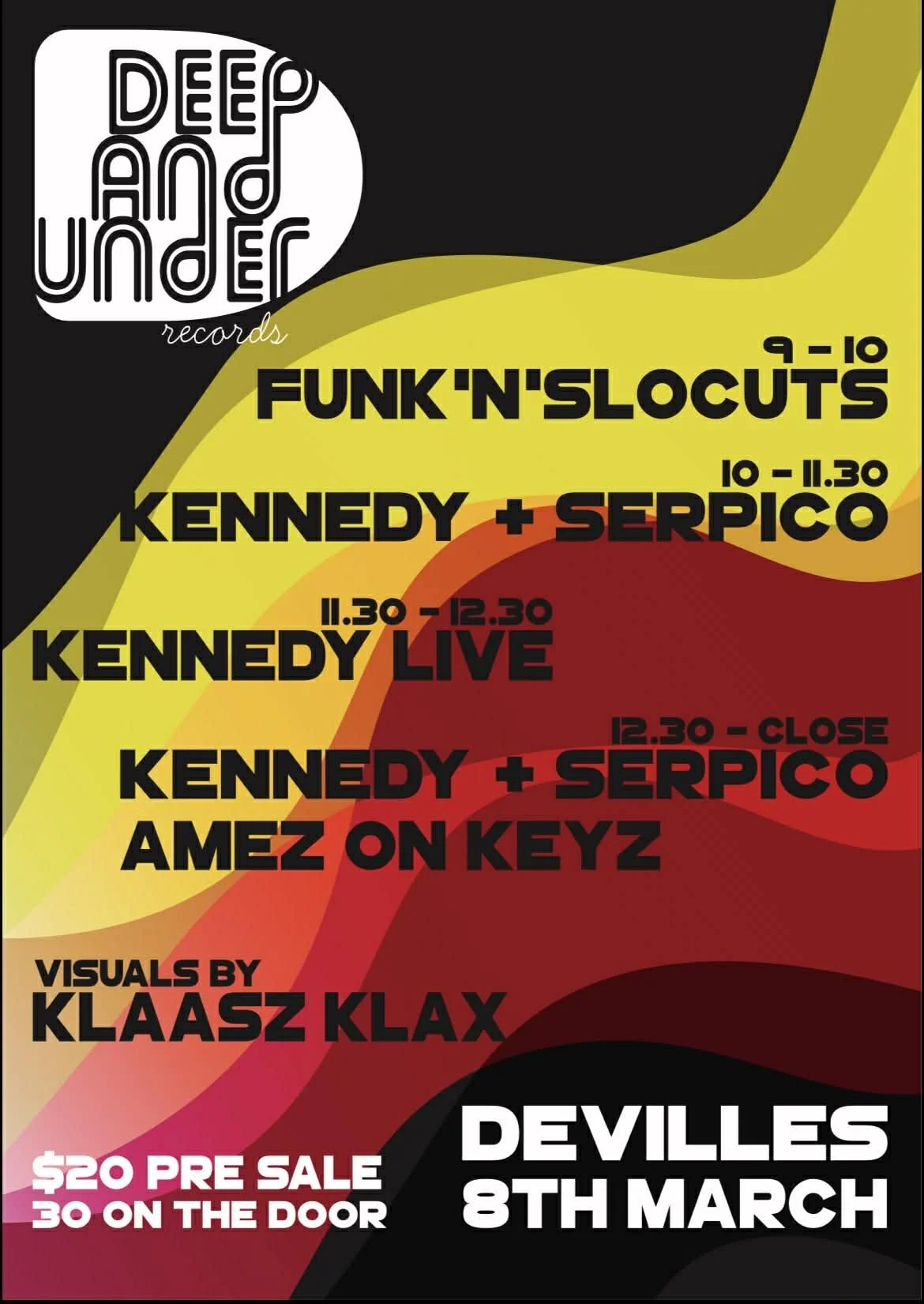 Deep and Under Records Presents The Secret Weapons Department ft NZ House heavy weights, rising stars in the world House scene, Kennedy and Serpico B2B all night from 9pm.