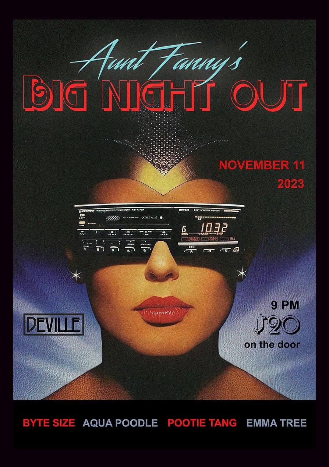Join the majestic Aunt Fanny and her fantabulous disciples at DeVille on Saturday 10 NOvember